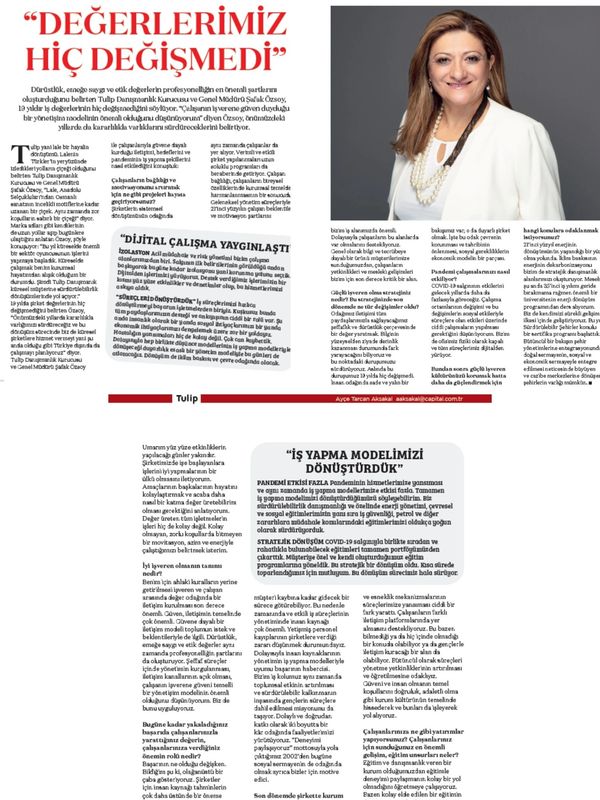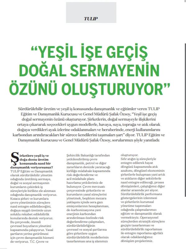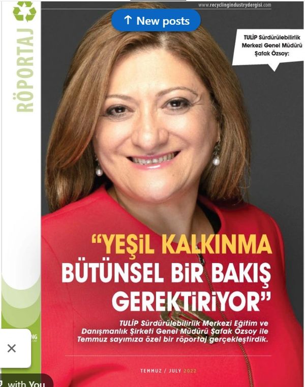 Recycling Industry dergisinin 178. sayısında TULİP Sürdürülebilirlik Merkezi Danışmanlık ve Eğitim Şirketi kurucusu Şafak Özsoy ile sürdürülebilirlik, yeşil kalkınma kavramları ile iş dünyasının üzerine düşen rolleri ele aldık.