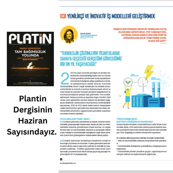 TULIP Sürdürülebilirlik Merkezi Kurucusu ve Genel Müdürü, Plantin Dergisi'nin Haziran sayısında "Enerji Dönüşümü" konusu işlemiş olup uzmanlar listesinde Sn. Şafak Özsoy'un görüşlerini içeren röjörtajı yayımlanmıştır.